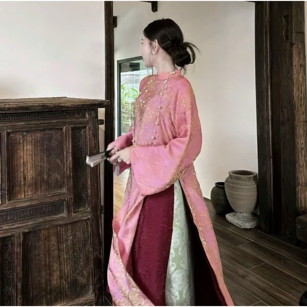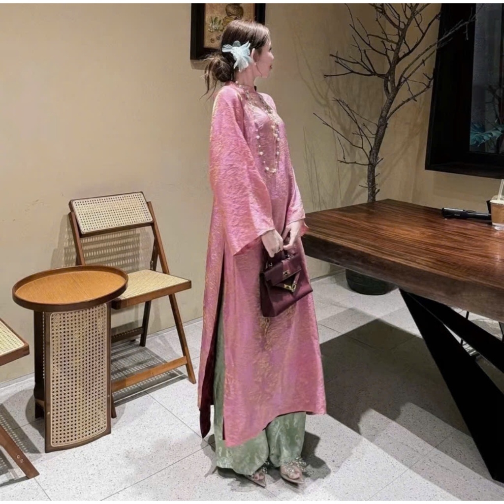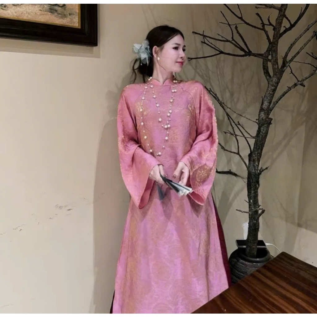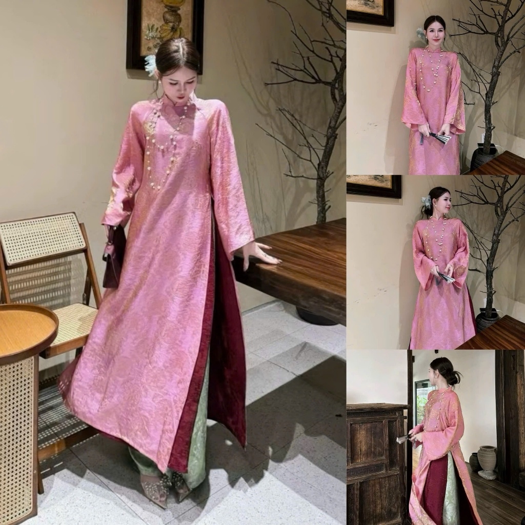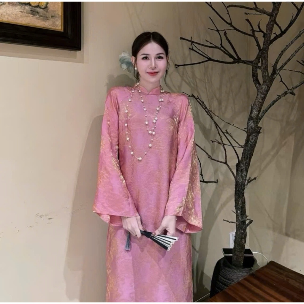 Áo dài suông 4 tà màu hồng trẻ trung, sang trọng vải lụa tằm nha xá cao cấp - Áo Dài Linh Đan